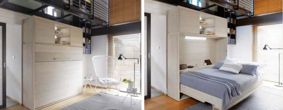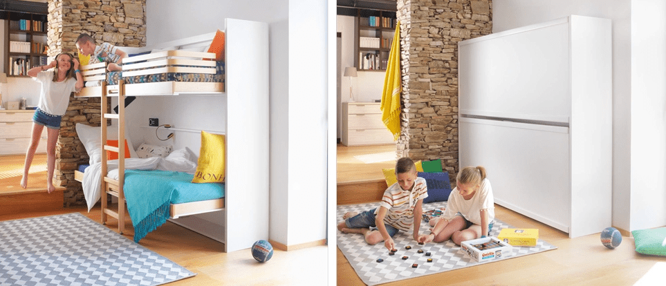 Si vous souhaitez créer ou gagner de l’espace dans votre chambre à coucher, CéLio vous suggère d’opter pour le concept du lit une ou deux places escamotable.