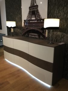 Décrite comme une vague de fraîcheur, sa qualité et sa sobriété s’expriment totalement. L’éclairage rajoute une touche de modernité qui a retenu votre attention. Bahut disponible à partir de 2010€.